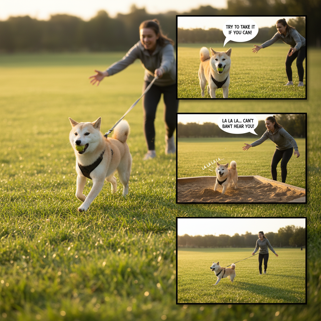 朝の7時半くらい、まだ露が降りてる芝生の上を、茶色い弾丸みたいな生き物が駆け回ってる。飼い主さんは必死にリードを握りしめてるんだけど、完全に引きずられてる。あの光景を見るたびに「ああ、今日も柴犬が勝ってるな」って思う。特に若い柴犬はすごい。ボール投げてもらった瞬間の加速力、あれ絶対時速30キロは出てる。しかも取ってきたボールを絶対に渡さない。「持ってこい」じゃなくて「奪ってみろ」ゲームになってるのが柴犬クオリティだと思う。耳をぺたんと倒して、お尻だけ高く上げて、「取れるもんなら取ってみな」みたいな顔してる。あの得意げな表情がたまらなくて、通りすがりの私まで笑ってしまう。