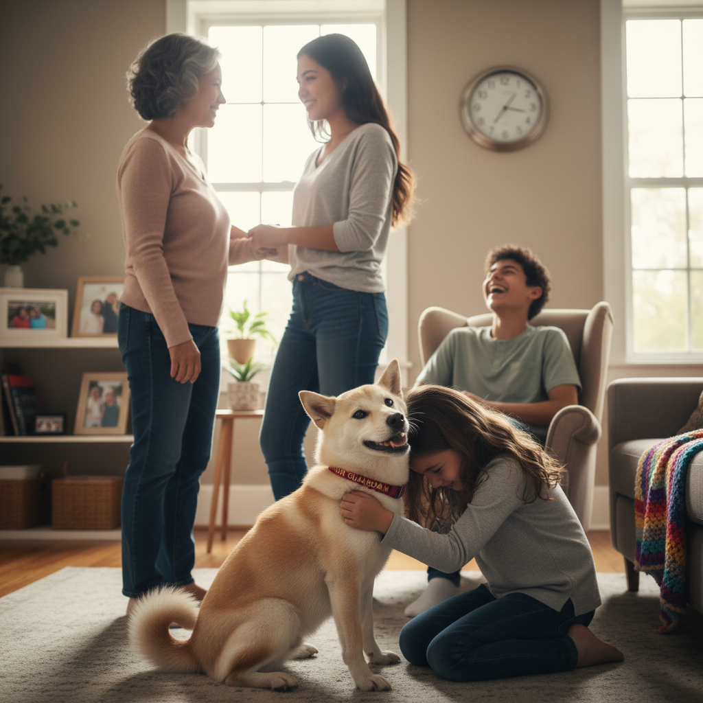 この前なんて面白いことがあった。母と姉が口喧嘩を始めたんだけど、犬が突然立ち上がって二人の間に割って入ったんだよ。で、母の手を鼻でツンツンして、姉の膝に前足を乗せて。二人とも笑っちゃって、喧嘩が終わった。偶然かもしれないけど、タイミングが絶妙すぎて、家族みんなで「この犬、わかってやってるだろ」って話になった。