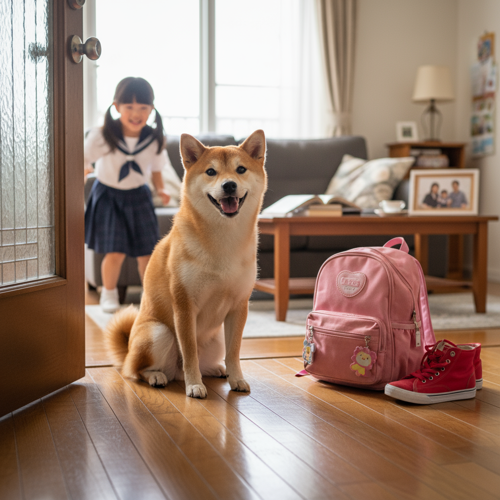 夜、仕事から帰宅して玄関を開けると、いつものように真っ先に駆け寄ってくるハナ。その後ろには「お帰りなさい」と笑顔で迎えてくれる妻と娘がいる。この何気ない日常の幸せこそが、私たちの宝物なのだと思う。