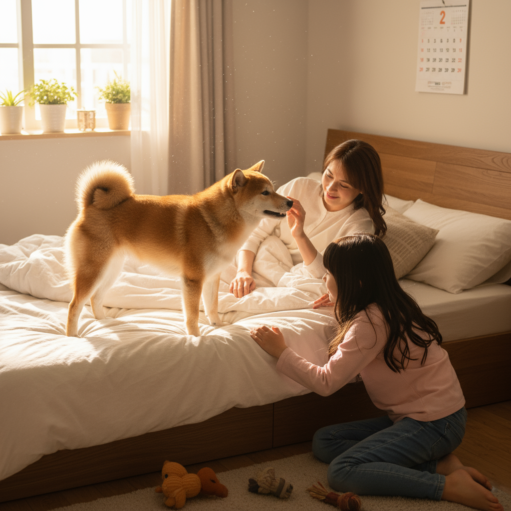 朝の光が窓から差し込む頃、私たち家族の一日は小さな足音から始まります。それは愛犬の柴犬、茶々丸の軽やかな足音です。家の中に響くその音は、まるで家族全員に「おはよう」を告げる目覚まし時計のようです。リビングに集まった私たち家族は、茶々丸を囲んで朝のひとときを過ごします。この何気ない時間が、私たちにとってかけがえのない宝物なのです。